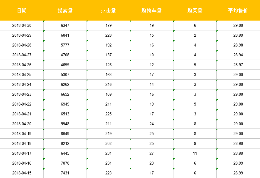 只要输入站点、ASIN,可获取产品从上架到现在的每天真实销量、搜索点击量、购物车量以及平均售价。一般最受卖家重视的是近一周的销售表现与过去两个月内每周平均的销售表现的比较差异,因为此分析可让我们了解多数商品在未来的销售趋势。对于新品的调研、竞品分析,甚至是否要跟卖这个产品都很有参考价值。