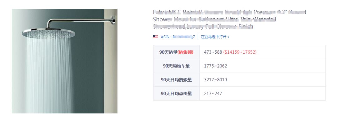 但这个ASIN报告是亚马逊未公开的数据,如果要知道竞品的搜索销量、高转化的关键词等,无从得知。近期,紫鸟上线了一个功能---ASIN报告,以上所涉及的数据紫鸟ASIN报告都可以提供。以一个ASIN为例,这是紫鸟获得的一份美国站的淋浴喷头商品的产品报告。以下给大家分析下报告中各数据可以给卖家带来什么价值?