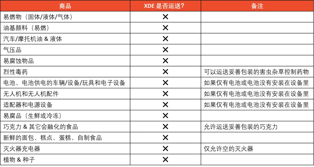 【物流服务】XDE 禁运品