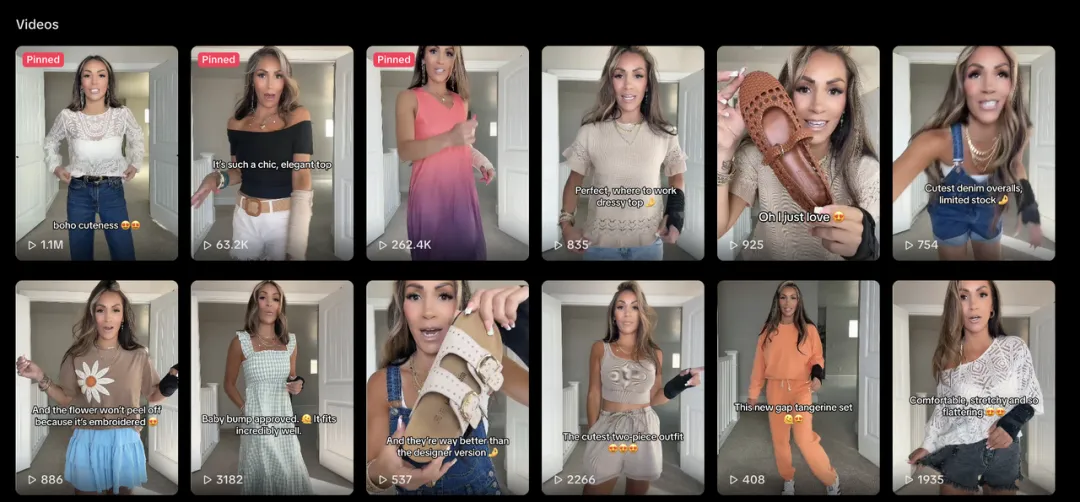 她是一位生活方式与轻时尚创作者,整体内容风格简约、优雅且高度生活化,视频常以日常穿搭、单品试穿与真实场景呈现为主。相比头部达人偏“氛围感”的表达,她的内容更强调“我能不能穿”“我适不适合”,因此更贴近用户的实际购买决策。
