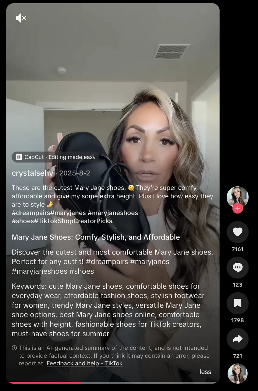 同时,视频文案中也包含关键词如“comfy”“stylish”“affordable”,既强化产品卖点,也提升内容在平台中的搜索与推荐概率。