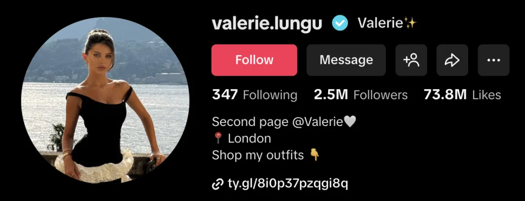 valerie.lungu 是一位拥有约250万粉丝的头部时尚生活方式达人,整体人设以“精致优雅女性”为核心。