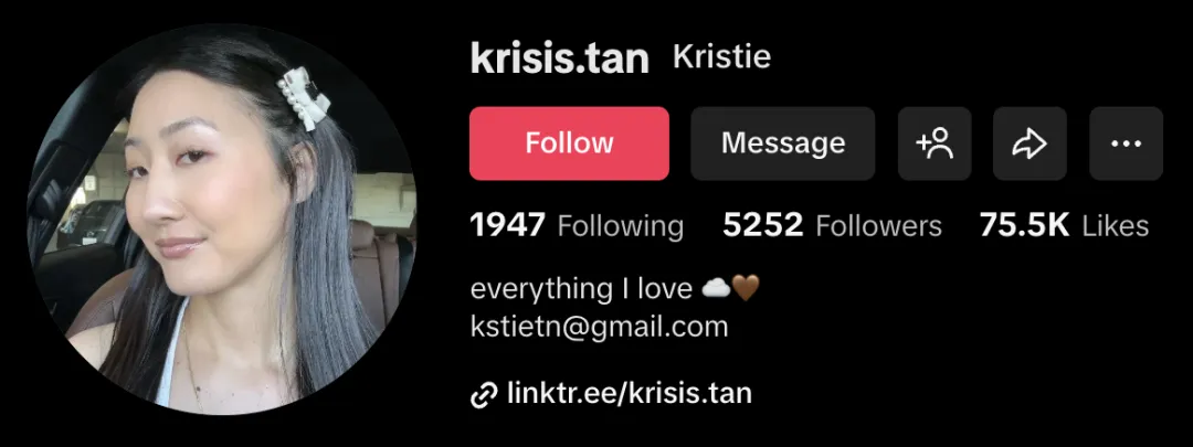 除此之外,Vivaia在达人矩阵上的布局并没有止步于“流量头部”,而是进一步向更具转化力的中腰部达人延伸,其中 Krisis.tan 的合作就是一个典型案例。