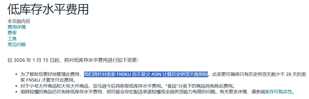 目前亚马逊没有多收低库存费