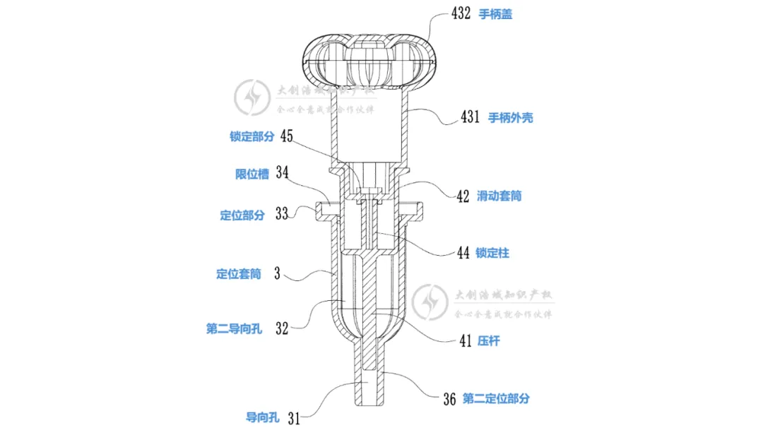 压合手柄:由手柄壳和可拆卸的手柄盖组成。手柄壳底部一体成型有锁定部,该锁定部与滑动套筒内的锁定柱通过紧固件紧密连接,确保手柄操作时力量能有效传导。