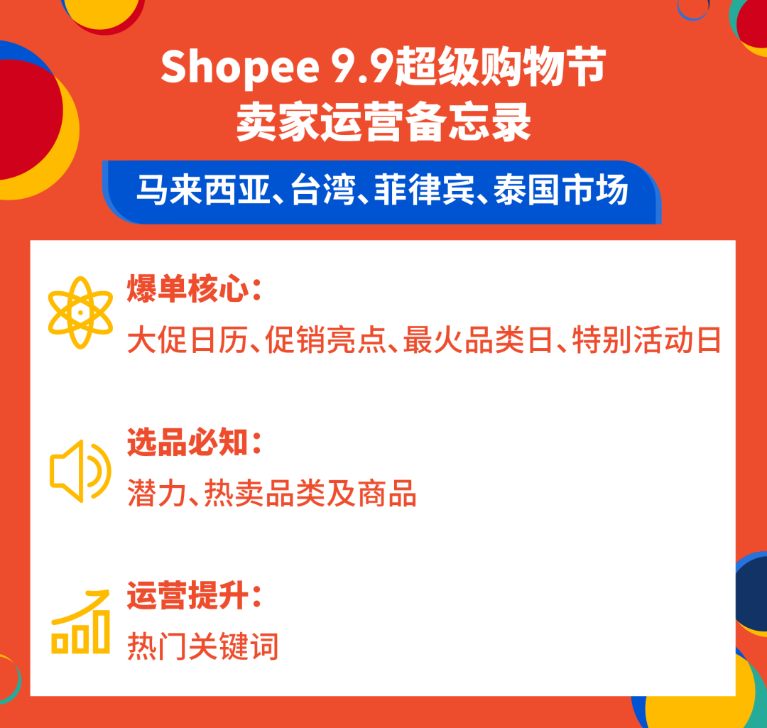 本文分享马来、台湾、菲律宾、泰国4大市场9.9超级购物节卖家备忘录,让你在每个市场都能实现本土化运营,获得飞跃式增长。各位老板、一线运营人员,请收好下面笔记!