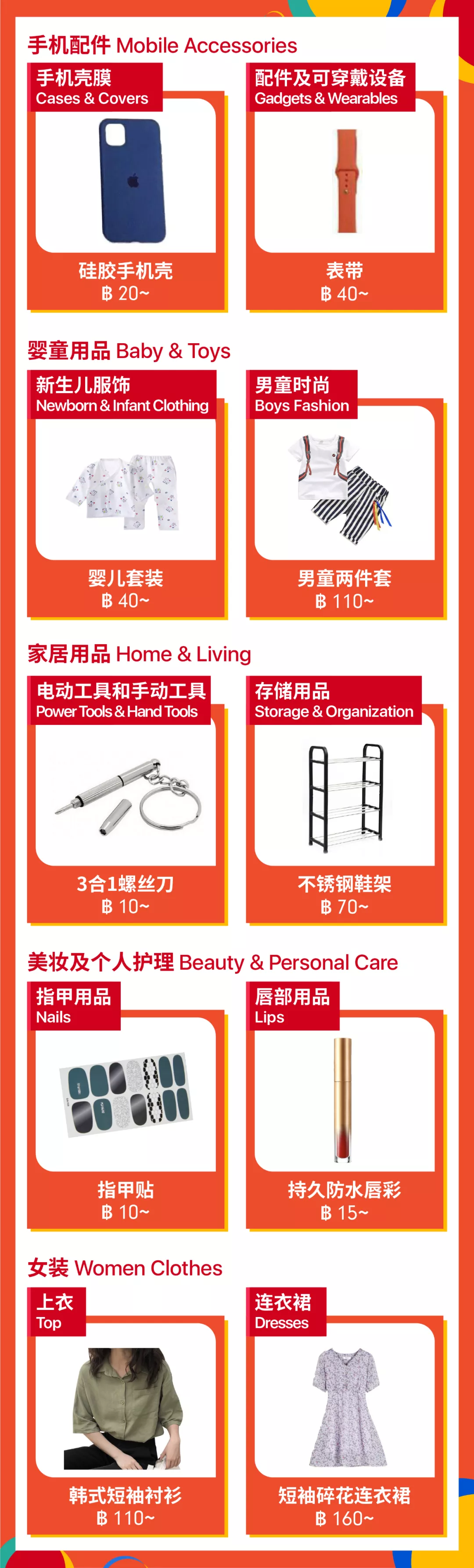 充电宝、短裙、泳衣是泰国市场大促潜力类目,市场需求多,相对缺口大,适合跨境卖家入场发展。