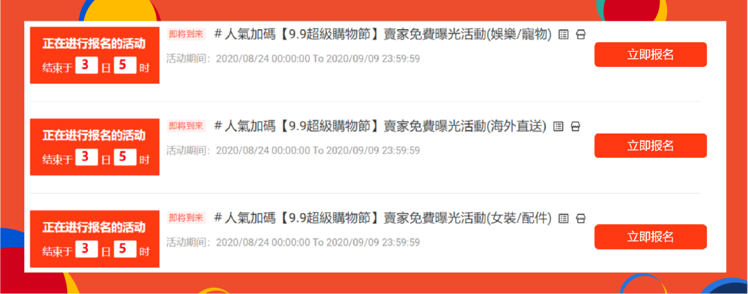 大促前一个月,卖家就要积极关注并提报活动。目前,诸多9.9超级购物节平台活动已发布,卖家可登录“卖家中心”申报活动,余下报名时间已不多,别因懒惰而错失难得的引流机会。