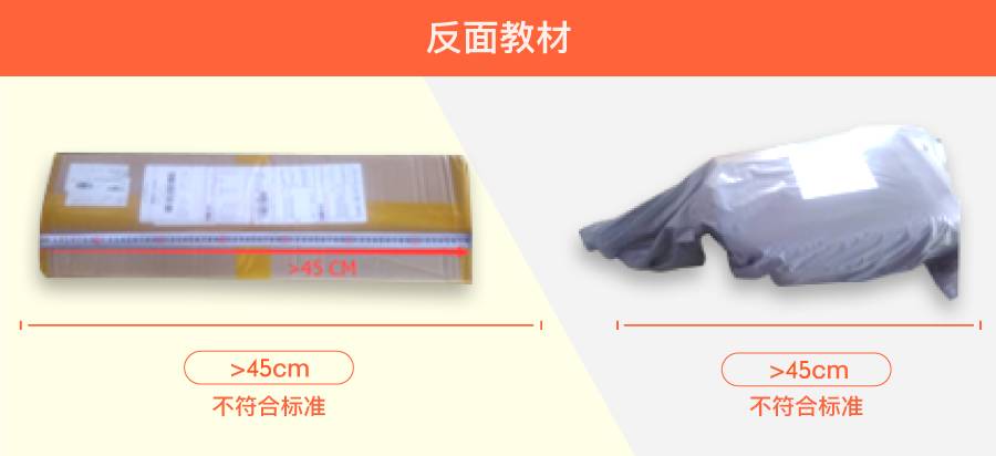 超过店配标准(超材件)无法通过店配途径寄送的包裹示例如下: