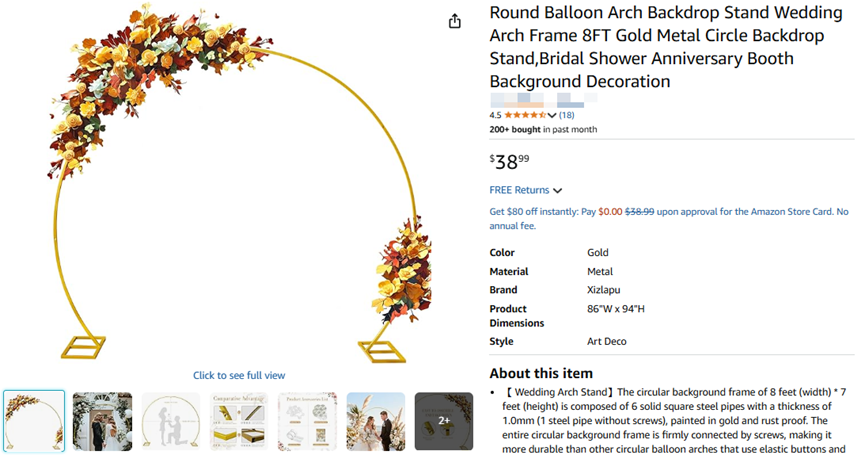 【25-cv-4856】警惕!婚礼/派对气球拱门装饰架美国外观专利TRO维权,未开始冻结账户资金!