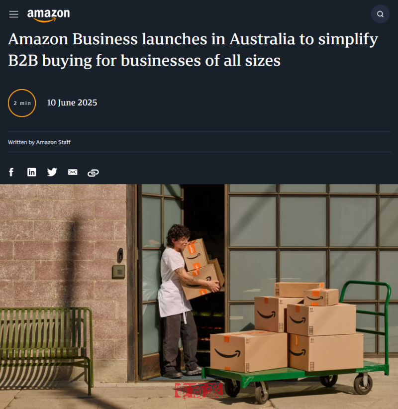 6月12日,亚马逊正式在澳大利亚站点推出Amazon Business(亚马逊企业购),进一步扩张其全球B2B市场。继加拿大、法国、德国、印度、意大利、日本、墨西哥、西班牙、英国和美国之后,澳大利亚是Amazon Business上线的第11个国家。目前,澳大利亚B2B市场规模预计达500亿美元,在电商渗透不断加深、企业数字化采购需求上升的背景下,该市场正快速增长。