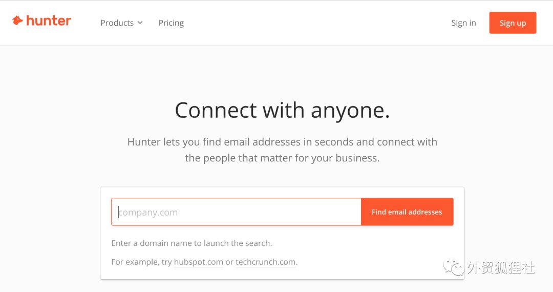 要发开发信,首先总要有对方有效邮箱吧?但是很多时候陌生开发并没有邮箱,那么社长推荐大家试试:Hunter.io。