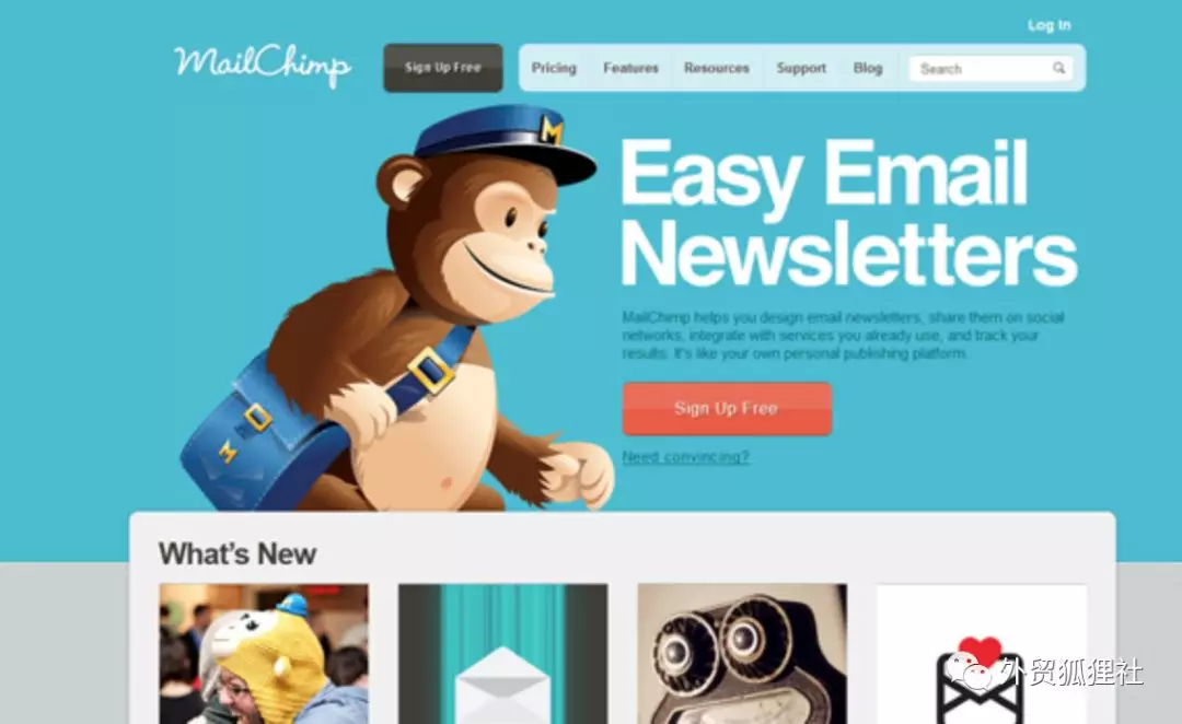 开发信建议大家还是一对一的认真写比较好。不过如果是要定期发产品咨询、贺卡等等,那么邮件群发工具就必不可少了。大名鼎鼎的Mailchimp肯定很多人都知道了。这款软件取名很有意思,chimp猩猩,寓意是说软件的简易程度,连大猩猩都能马上上手:)