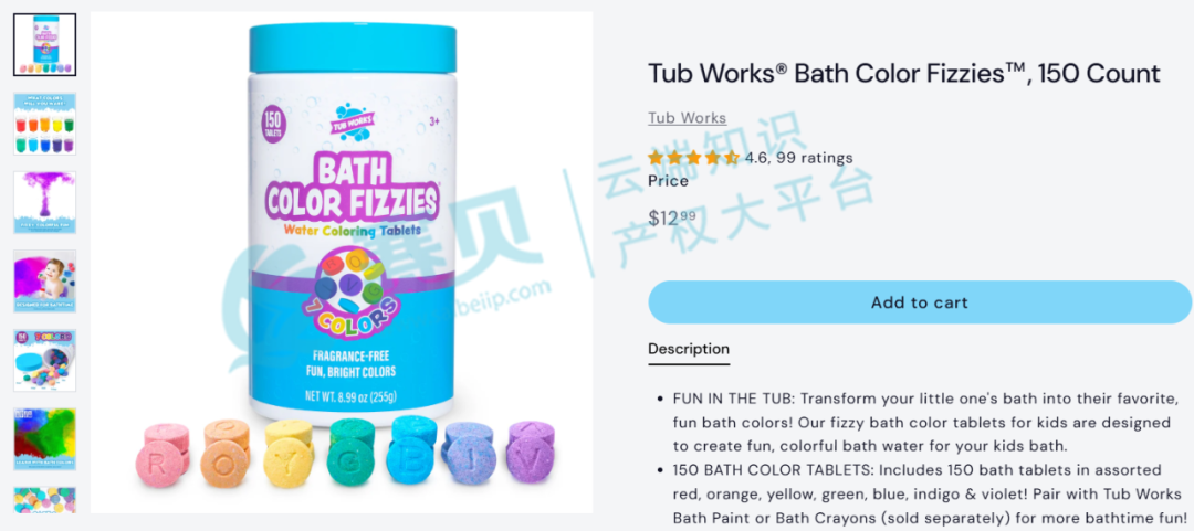 案件涉及多项产品营销原创版权,涉及“Bath Color Fizzies”(浴用彩色起泡产品)系列广告文本、包装设计、安全/色彩主题照片;以及 “Bath Bubbly Products”(浴用泡泡产品)系列泡泡主题设计作品、科学属性文案等。