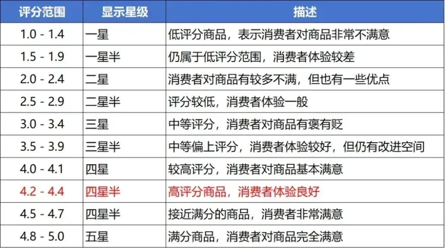 这一规则直接让 4.2–4.4 分段产品 “越级展示”,也是大量产品看似评分高、实际口碑一般的原因。