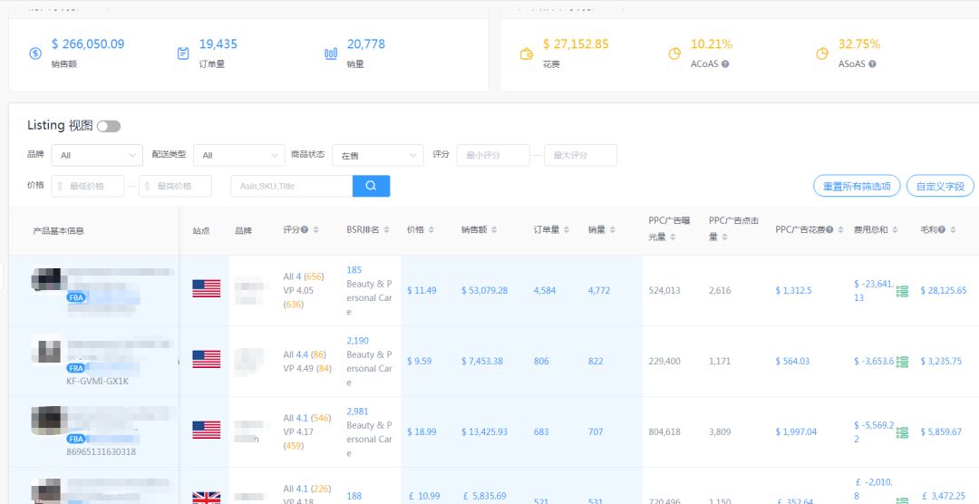 4KMILES为卖家提供全面的广告报表,一站集成亚马逊后台所有广告数据,卖家可以从账号、产品和关键词的维度分析广告成效。除了广告的基础数据,还增加了ACoAS(广告花费占总销售额的比例)和ASoAS(广告销售额占总销售额的比例)两大广告指标,通过分析ACoAS和ASoAS,了解ASIN的广告成本以及自然和广告订单占比。另外,卖家可根据产品不同的阶段,参考ACoAS和ASoAS制定不同的策略,然后根据策略调整bid和budget,提高广告投放的投资回报率。