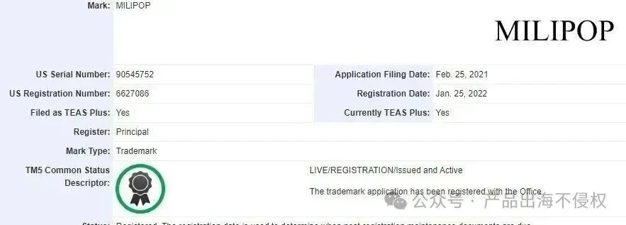 维权品牌:MILIPOP 玩具商标
