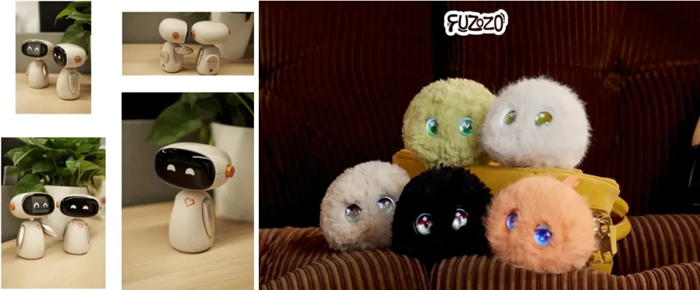 珞博智能成立于 2024 年,首款产品 Sunday 官方定位为 “AI 潮玩”,宣传称产品形态支持桌面、地面、可穿戴的三合一场景。Sunday 高约 15cm 支持语音聊天、表情识别、长期记忆和性格养成等功能。从官方介绍来看,与其后来的明星产品 Fuzozo 相比,Sunday 除了没有“碰一碰”加好友的社交功能、外观形态上存在较大差异外,其余设定几乎均被 Fuzozo 延续。