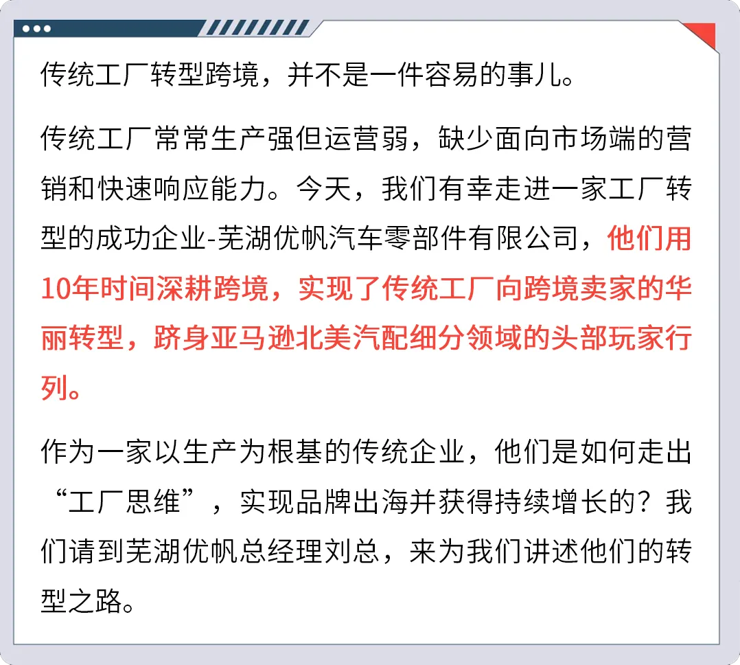 老牌汽配工厂坚定品牌出海,仅1年登顶亚马逊北美站Best Seller,3年变身亿级大卖