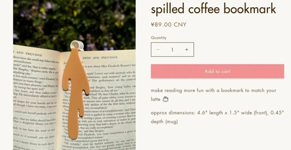 原告Ruan Bonney 作为 Cafe Bonney 品牌创始人,擅长将日常生活场景转化为艺术设计。其 2024 年 3 月推出的 “Spilled Coffee” 书签。