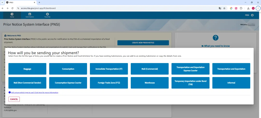 你必须获得授权才能使用 CBP 的 ABI/ACE/ITDS 接口(19 CFR 143.1),进口商可以委托报关行代为发送,但任何人都可使用 FDA 的 PNSI 系统。若你是 ABI/ACE/ITDS 的授权用户,可在向CBP 提交入境申报(Entry)时一并提供事先通知。