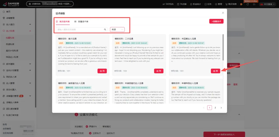 为了让商家在与达人沟通时更专业、更贴合当地语境,更容易被接受,达秘还有海量的邀约模板与私信话术。