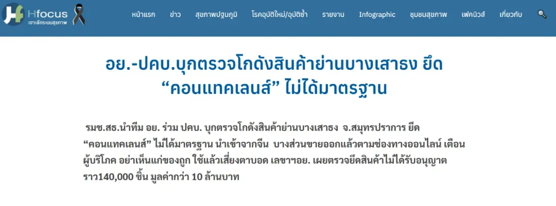 根据《曼谷邮报》的消息,不久前,泰国多部门突击检查曼谷近郊一处中国籍租户仓库,查获14万件“不合格”药品、保健品和化妆品,案值近1000万泰铢(约合人民币221万元)。这些违规商品多数为无标准隐形眼镜和化妆品,部分已通过线上平台售出,相关部门正追查责任方并协调召回。