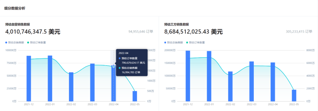 通过该数据图我们可以知道TOP商品每个月的预估总销售额和预估总订单量。