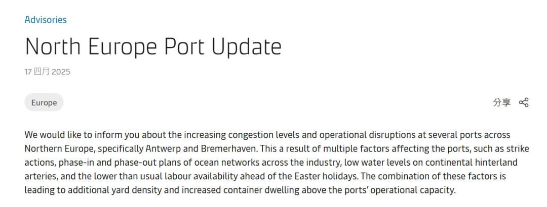 注意!延误警告!欧洲多港口拥堵加剧,运营中断!
