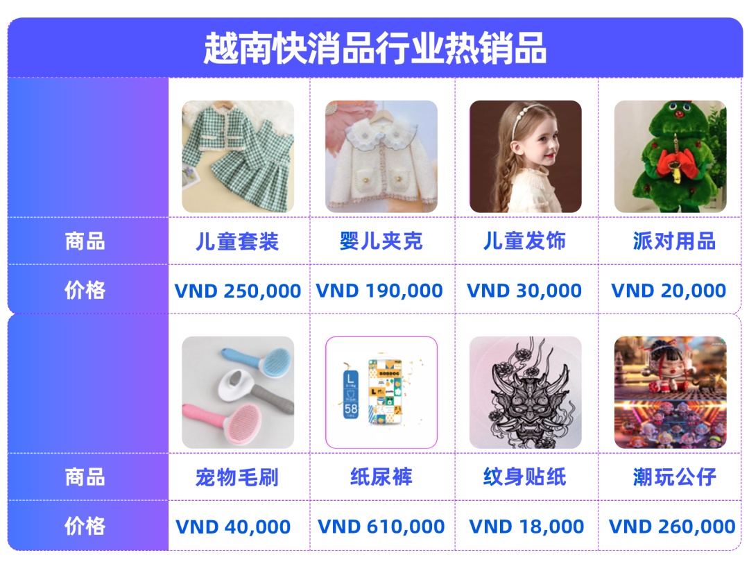 在冬季,女性使用更多的护肤品,各式韩流明星仿妆教程流行于各大社交媒体平台,随之而来的则是美妆商品的消费热潮。国货多个美妆品牌和商家以质美价廉的优势领跑越南快消品热销。在今年双11中,国货美甲成为越南消费者最爱,双11当天销量达到1.1万套。目前,“中国美妆品牌”已成为越南热搜关键词。