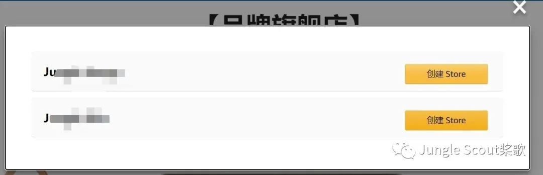 弹框中会显示出你注册成功的品牌,选择一个品牌,继续点击【创建Store】