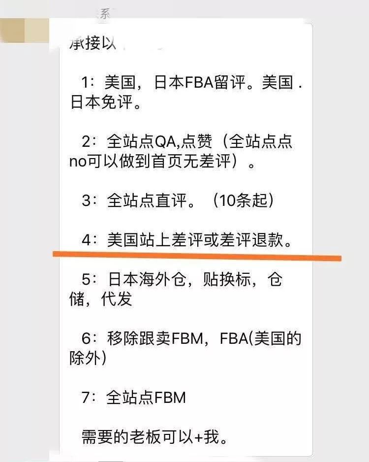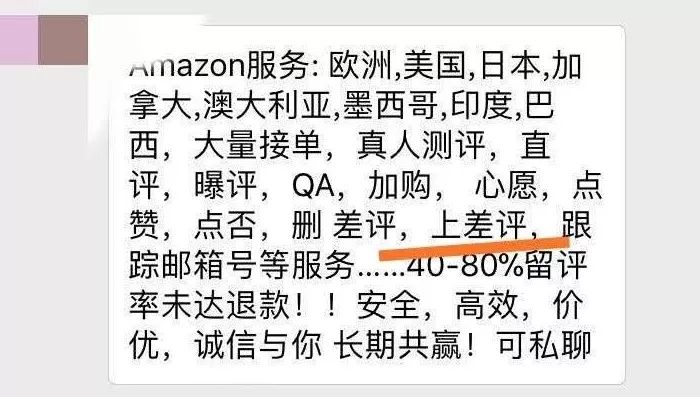 这些上差评的服务商,可以说是毫无底线,只要有客户,什么样的账号、什么样的评价都可以上。在多个不同的跨境电商微信群,都能看到上差评的服务宣传。
