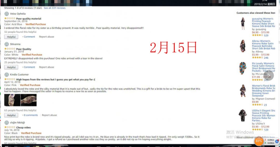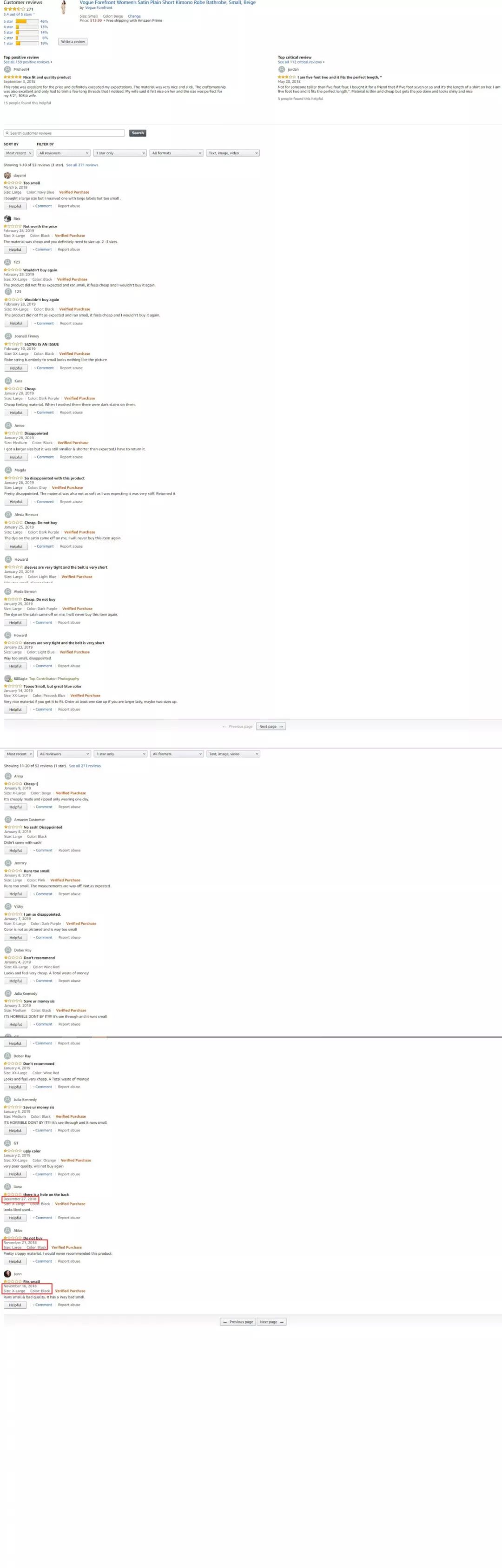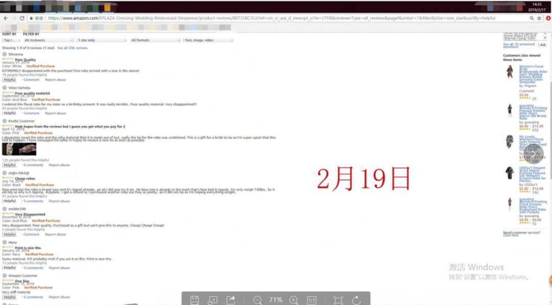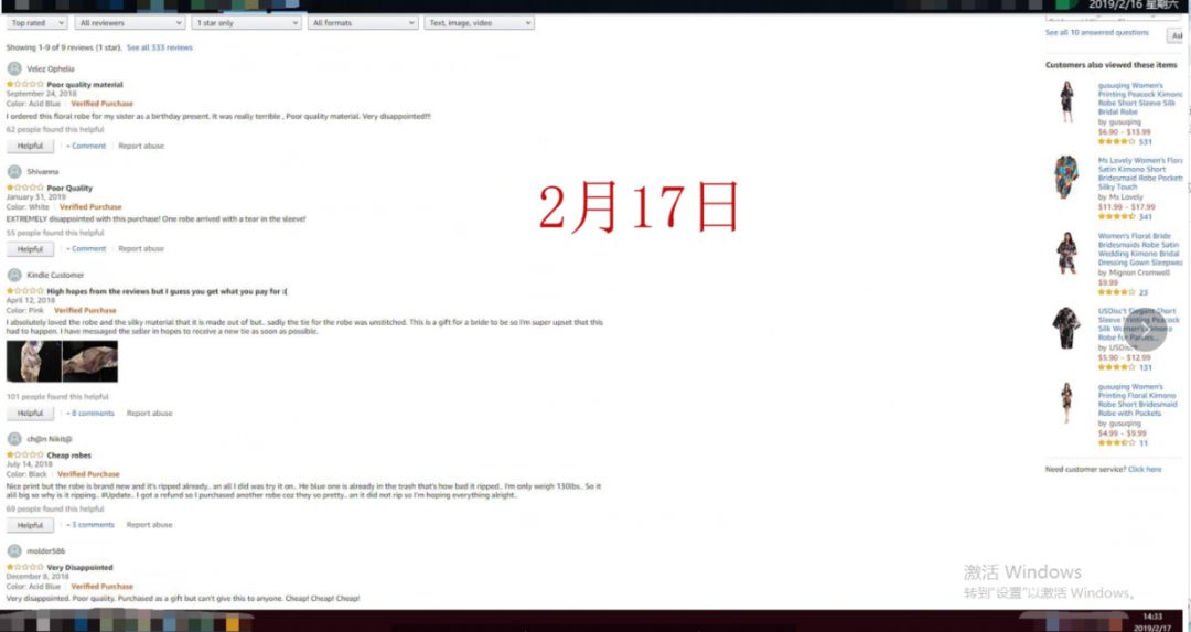 为了更直观的表达,请看这几家受害卖家的一星评论截图:最近的一星评论都是集中在18年12月底和19年1月,相似评论内容,无非就是便宜,烂,开线,破了,掉色,尺码不对,小,短,没有腰带等等。