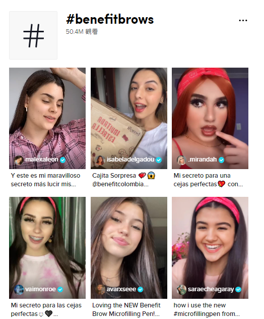 为了能够迎合品牌的理念,他们将重点放在寻找符合 Benefit Cosmetics 多元化、和具有真实性精神的美妆红人创作者。最终,挑选了22位Z世代和千禧一代红人创作者参与了Benefit发起的标签赛#Benefit Brow Challenge。