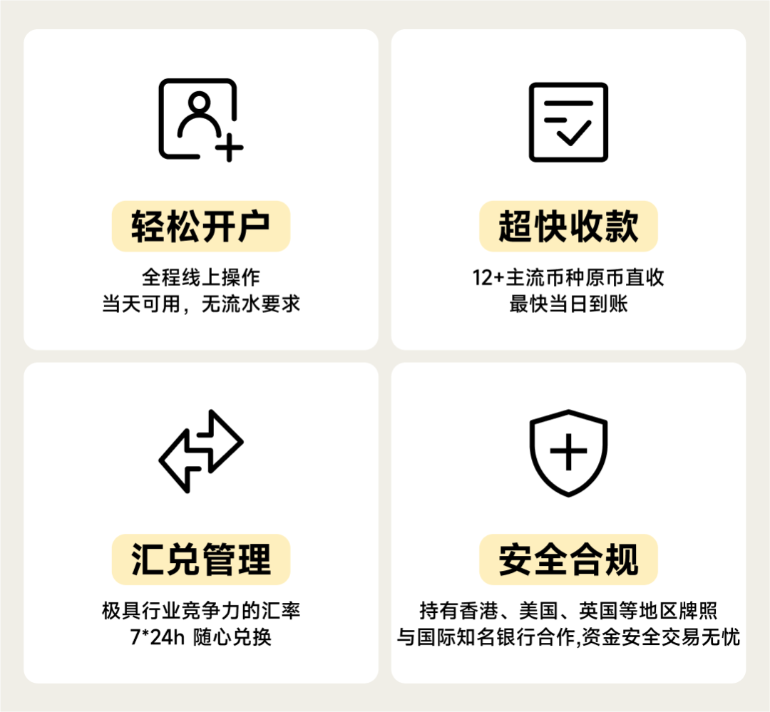 多币种本地账户,高效收款、无中间行手续费