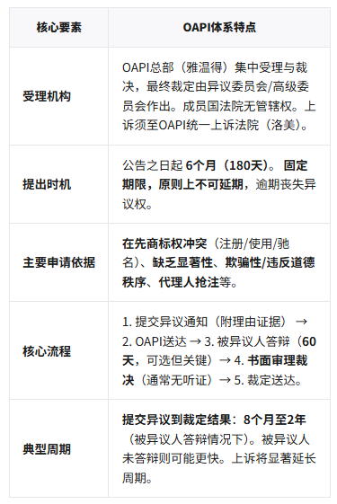 OAPI的异议程序相较于某些国家体系更为简洁,主要依赖书面材料: