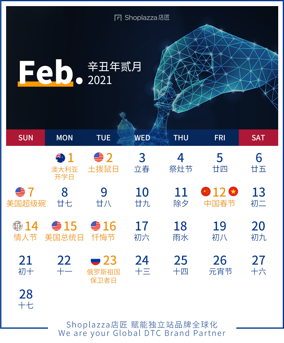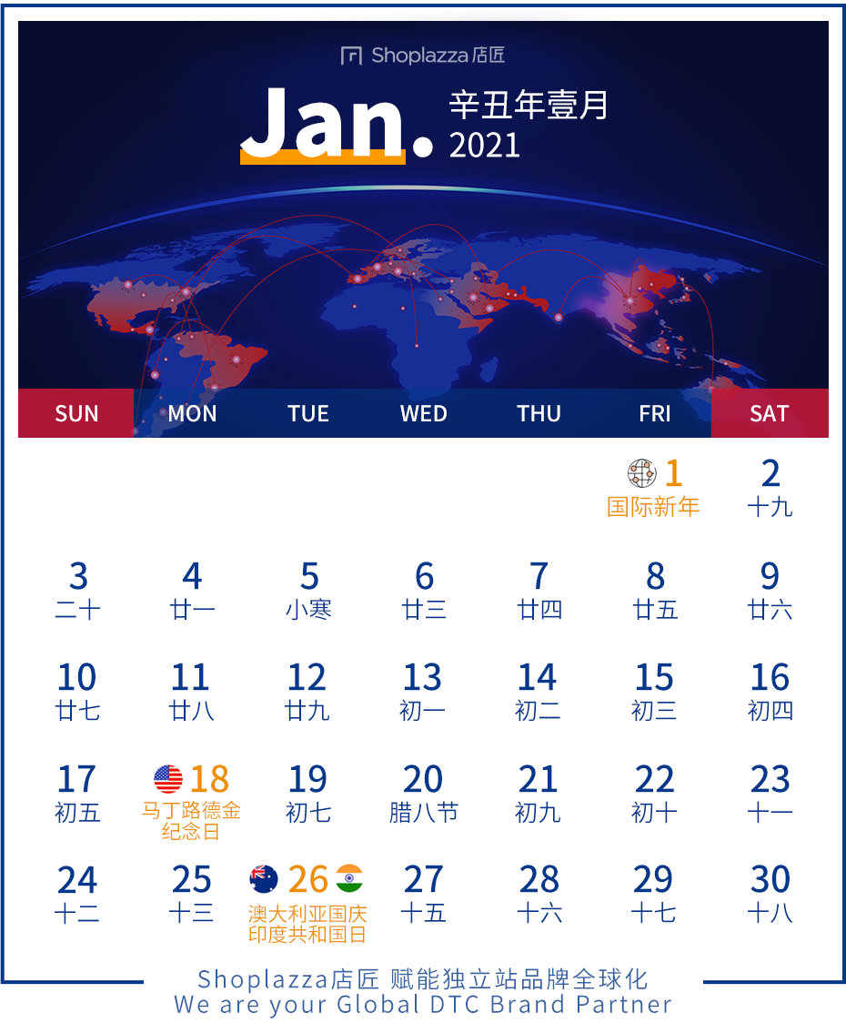 我们整理了一份超详细的「 全球跨境电商2021营销日历 」,标明了那些「 全球最重要的消费节点 」和「 注意Tips 」,速速送上,助你新年爆单一臂之力!