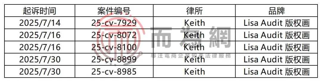 【侵权快讯】25-cv-1195 Lisa Audit 再次新增8张版权!起诉351家店铺,亚马逊、沃尔玛成重灾区!