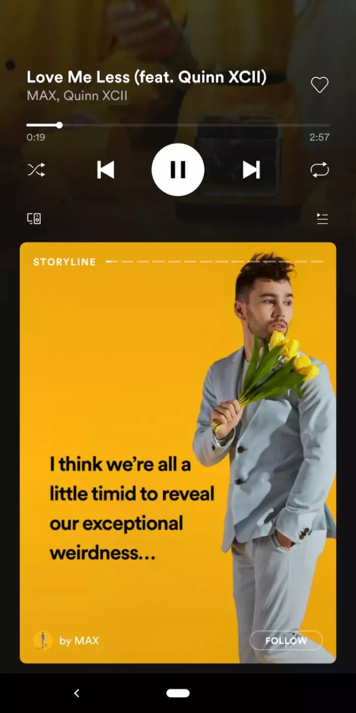 随着Instagram,Facebook和YouTube等各大平台相继开启Stories,音乐流媒体Spotify也不甘示弱,开始测试Storyline~