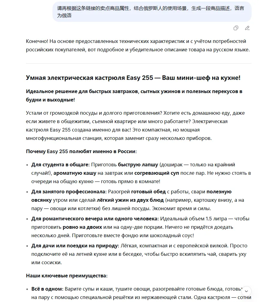 请再根据这条链接的卖点商品属性,结合俄罗斯人的使用场景,生成一段商品描述,语言为俄语。