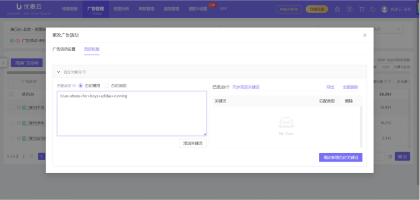 blue+shoes+for+boys+adidas+running,通过分析可以得知,与广告词:running shoes 相关性很弱,且属于极小众的词,甚至不属于常规关键词,对广告收益效果很低,就可以将其提前加入否定投放。