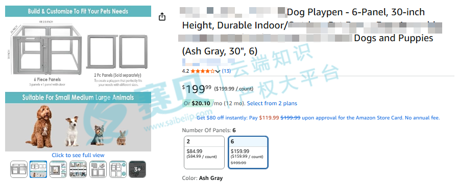 赛贝在自主研发的TRO案件查询系统获悉,2025年9月3日,AVEK IP, LLC律所代理Wuxi Gougelila Electronic Commerce Co., Ltd.在美国德克萨斯州发起编号25-cv-01412诉讼,涉及宠物围栏外观专利侵权,宠物用品尤其是卖宠物围栏的卖家需速排查店铺避坑。