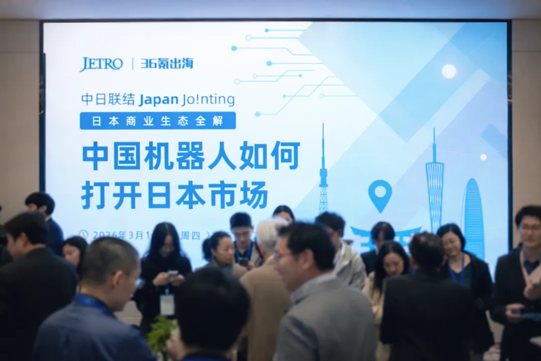 3月12日下午,日本贸易振兴机构(JETRO)携手36氪出海、36Kr Japan 在深圳推出“中日联结 Japan Jo!nting:中国机器人如何打开日本市场”线下闭门分享会,线上同步直播。本次活动聚焦机器人出海日本的真实实践,日本企业与代理商代表、深度参与日本市场的中国出海企业,以及熟悉中日产业协作的行业实践专家出席活动并发表主题演讲,从多元视角分享实操经验与方法论。