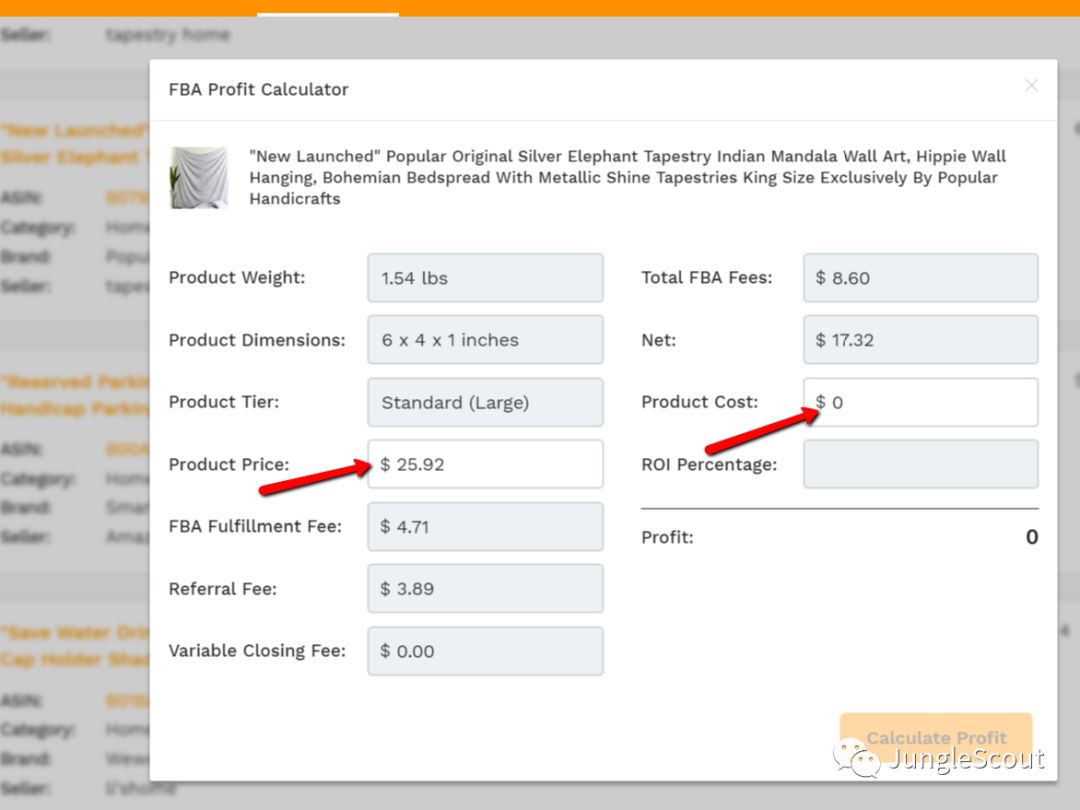 大家可以在该计算器中编辑各项成本,比如可以把关税导致的成本增加填入到红箭头——Product Cost的位置,点击右下角的Calculate Profit,计算器就会算出来净收入。是不是很便捷呢?