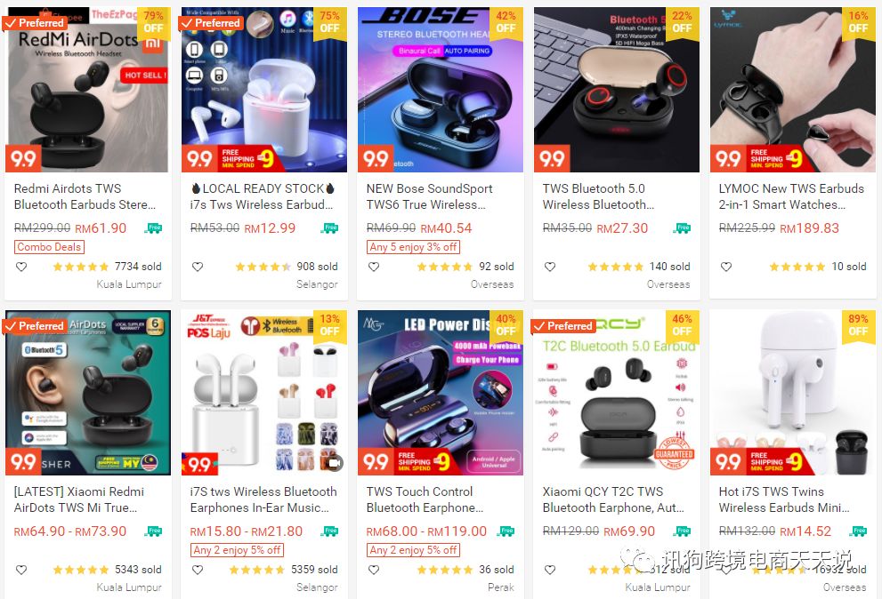 同理我们抽取shopee马来西亚站销量靠前的耳机,