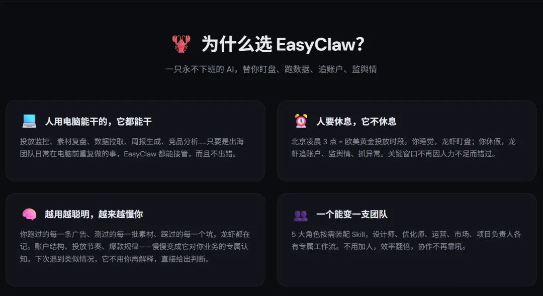 2026出海必看|EasyClaw龙虾悄悄上线9个视频制作功能,TikTok/Meta投手:这不就是我要的AI员工吗