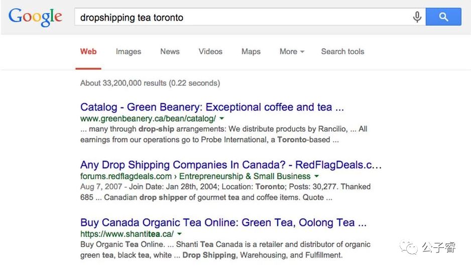 选择dropshipping之后,接下来要去找供应商。Google 搜索 “dropshipping tea toronto”, “wholesale tea supplier toronto” ,“wholesale tea toronto”这些关键词: