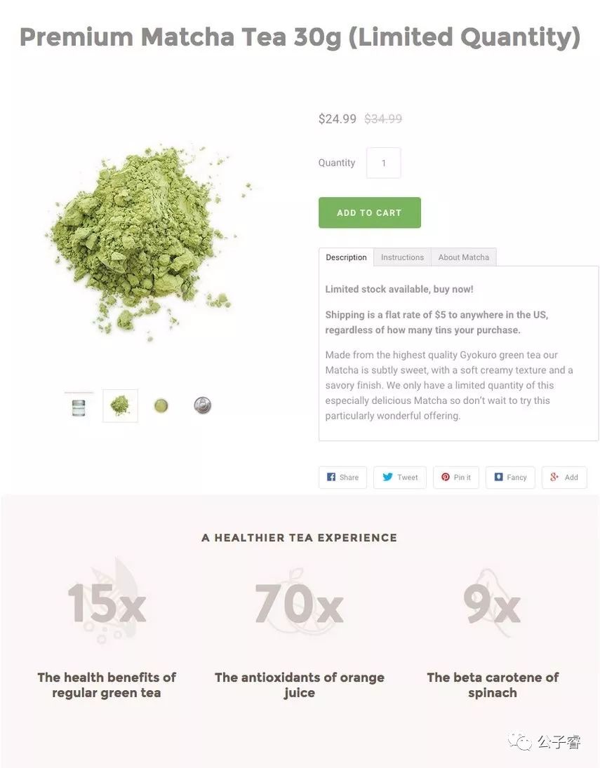 经过调研,市场上的产品大多是$15~$30 每30g。他在价格上的策略是,用价格来给消费者下锚——因为大多数消费者会将价格和品质关联起来。通过更好的图片介绍和产品包装来营造高端的感觉。