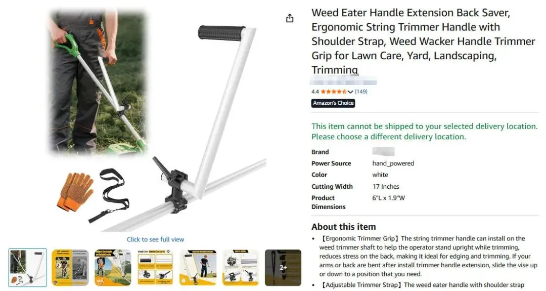 原告XIAOQIAO WANG是一位国人卖家,本案是为其名下的一款割草机手柄专利发起维权。这款割草机手柄延长器可安装在割草机轴上,帮助操作者在修剪时保持直立姿势,有效减轻长时间弯腰劳作带来的背部压力。