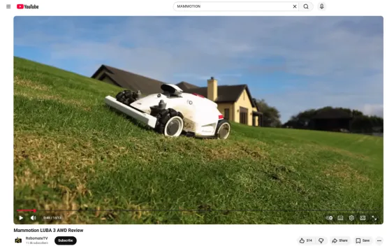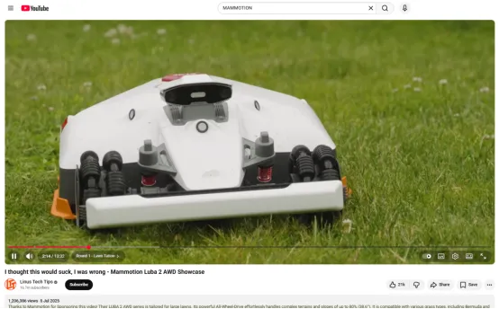 博主结合自身“极限测试”的爆款基因,针对MAMMOTION产品的核心优势设计实测场景,比如LUBA系列的泥泞陡坡攀爬测试、YUKA系列的长草切割与防缠绕测试,通过详实的数据和真实的使用体验,强化产品在科技爱好者圈层的技术可信度有效传递了产品的性能优势;